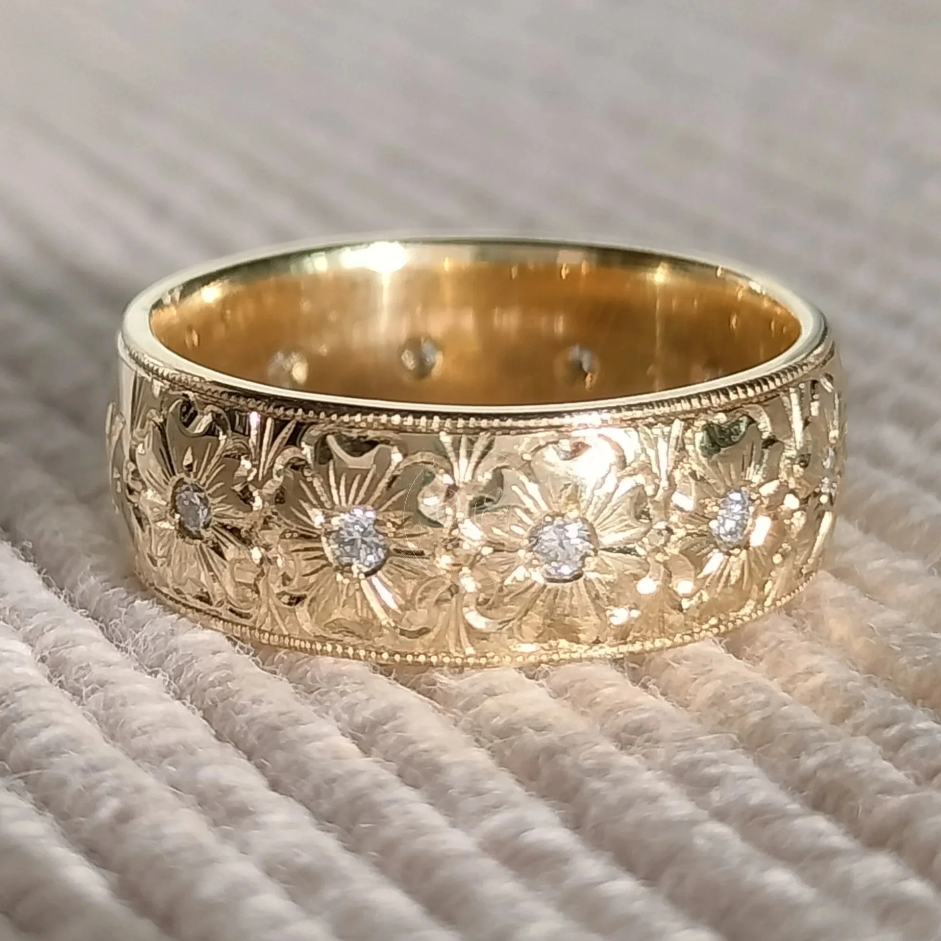Hand engravings brings jewelry to life, it gives depth, shine and interesting patterns, it gives the extra sparkle a jewel needs.