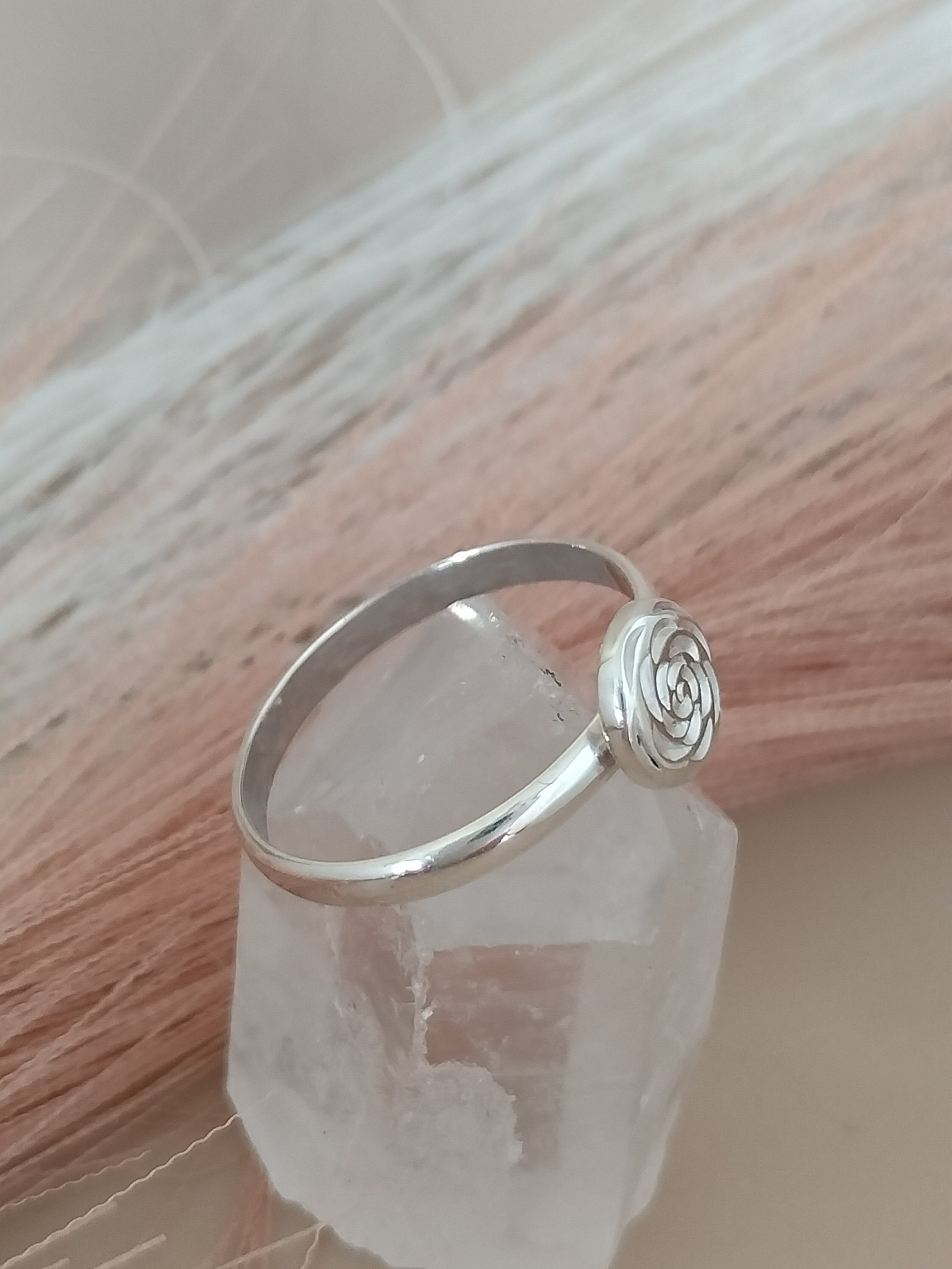Sterling silver stackingring, with handengraved flower.